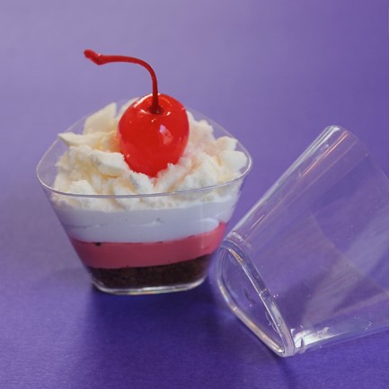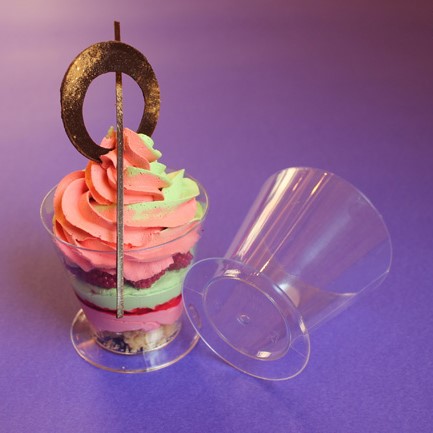 Stylish and decorative Cups made with crystal transparent material which can be used as a container for mousse, jelly, pudding, tiramisu, and other desserts. When presented in this exquisitely designed package, appetizer trays, single servings, and modest proportions are instantly improved.